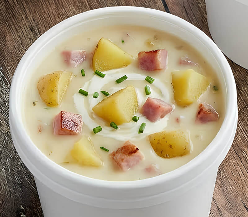 Yukon gold potatoes and vegetables with roasted ham in a smooth cream sauce. Thick and fulfilling on a cold day.